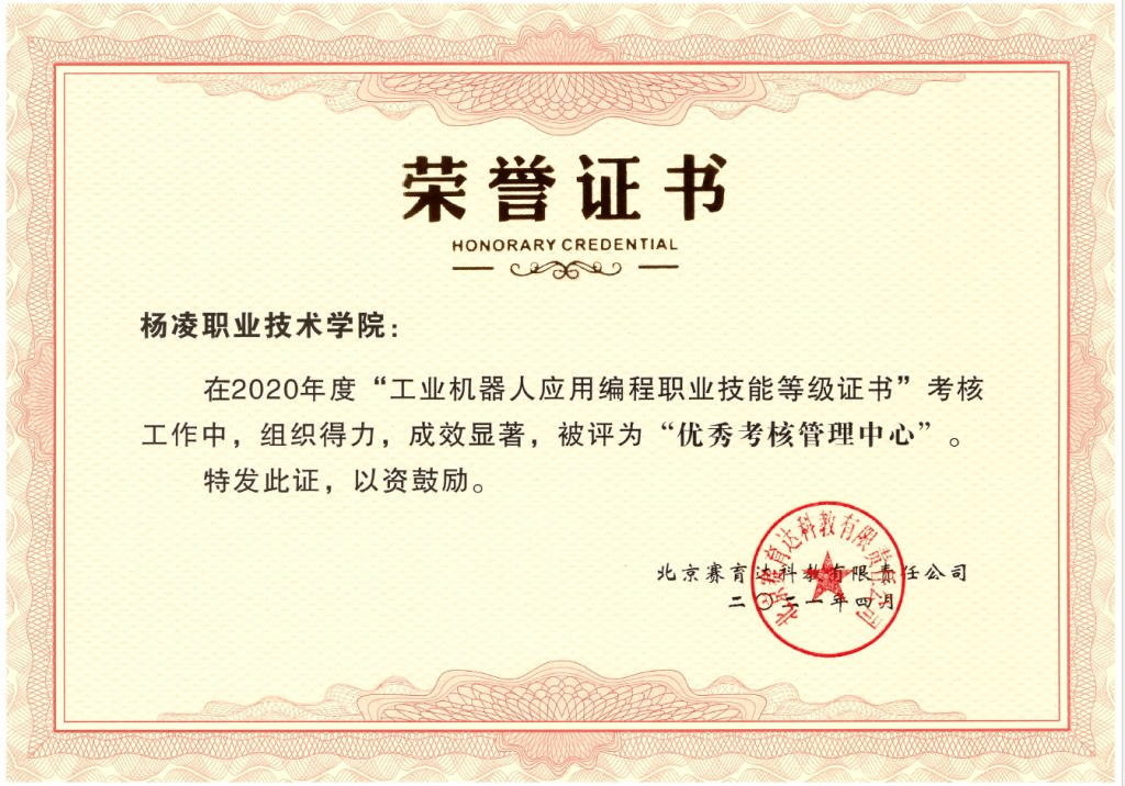 4月23日至25日,智能线集成与应用、运行与维护1+X证书制度试点工作说明会暨工业机器人应用编程1+X证书制度试点总结交流会在无锡职业技术学院国际交流中心举办,永利官网“工业机器人应用编程职业技能等级证书”考核管理中心被评为“优秀考核管理中心”。