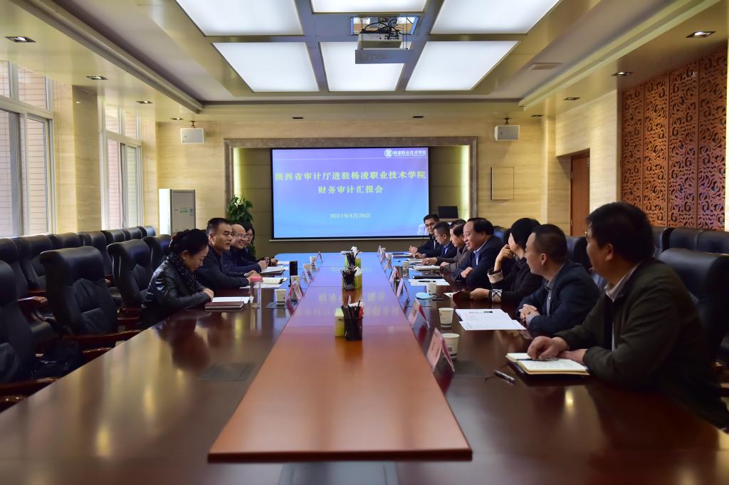 4月26日,陕西省审计厅农林水利审计处姚殿战处长、朱理平、赵雯副处长及审计员刘敏等一行四人代表省审计厅,对永利官网预算执行及财务收支情况进行审计核查。校长王周锁,党委副书记、纪委书记刘粉莲,副校长祝战斌、胡俊鹏,党政办公室主任张朝晖、审计处处长蔺林田、财务处处长邹剑等参加了汇报会。