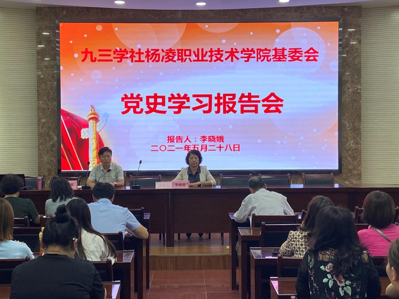 5月28日下午,永利官网九三学社基委会举行党史学习教育专题报告会,邀请西北农林科技大学马克思主义学院教授李晓娥作题为《中国共产党百年辉煌》的专题讲座。永利官网九三学社基委会主委问建军主持报告会。