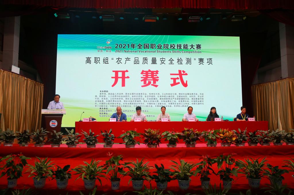 全国供销合作职业教育教学指导委员会常务副秘书长聂云杰宣布2021年全国职业院校技能大赛(高职组)“农产品质量安全检测”赛项正式开赛。杨凌示范区党工委委员、组织部部长田晓炜,陕西分赛区执行委员会副主任、陕西省教育厅职成处副处长周杰,永利官网党委书记陈宁分别致辞。赛项执委会委员、永利官网校长王周锁主持开赛仪式。