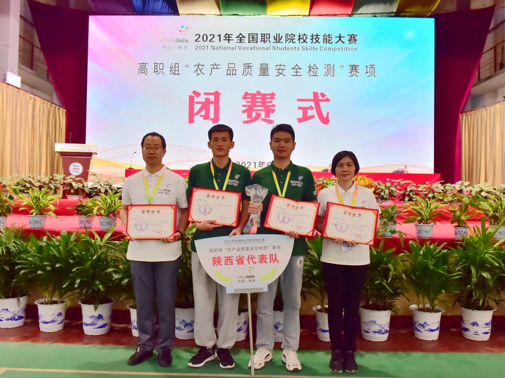 经过两天紧张激烈的比赛,6月18日上午,2021年全国职业院校技能大赛(高职组)“农产品质量安全检测”赛项闭赛式在yl23455永利官网举行。由永利官网王博文、王胜武2名学生组成的陕西省代表队,在本次赛项中取得了第一名的好成绩。