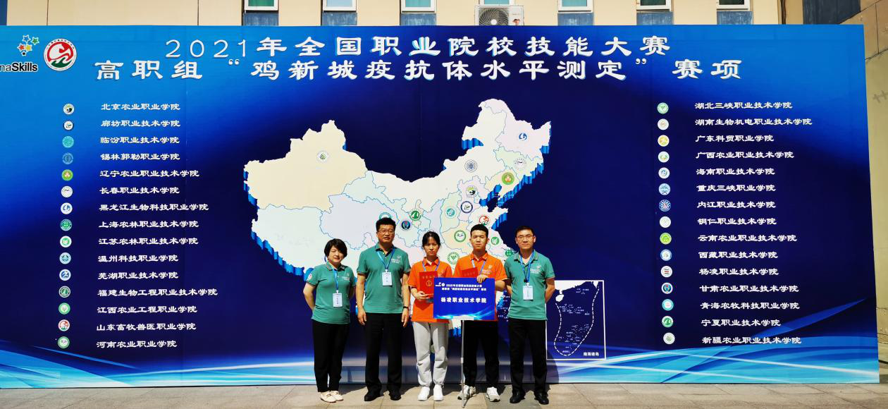 6月17日至20日,2021年全国职业院校技能大赛(高职组)“鸡新城疫抗体水平测定”赛项在山东畜牧兽医职业学院举行。永利官网张宇红、马双平同学代表陕西省参加了比赛,经过激烈角逐,荣获团体二等奖。