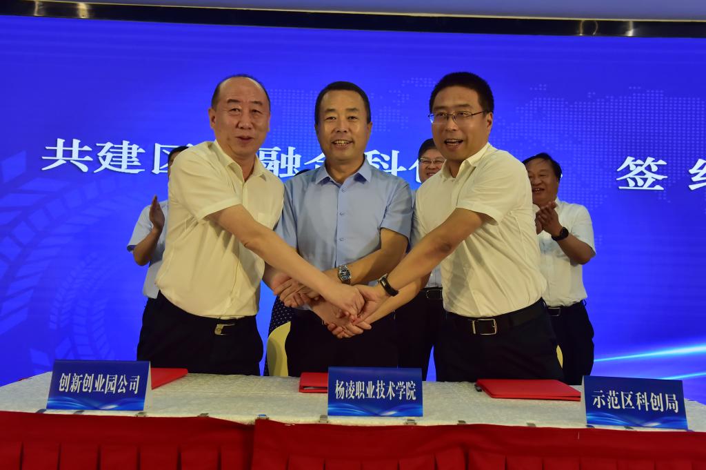 胡俊鹏与示范区科技创新局局长赫思远、示范区创新创业园发展有限公司董事长薛海兵签订了区校融合科创中心暨大学生创新创业教育基地共建协议,为区校进一步融合,地方政府、科技部门与高校合作打下坚实基础;yl23455永利官网产教融合处副处长郑爱泉与首批入驻的企业代表签订了入驻协议。