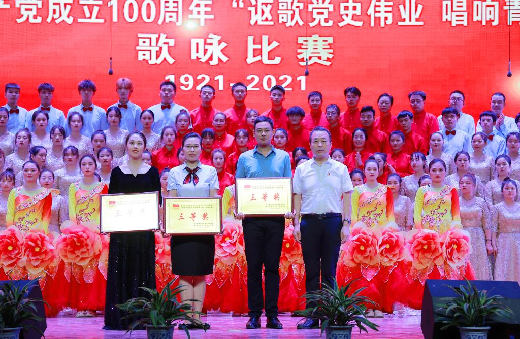 6月25日晚,永利官网在南校区举办“讴歌党史伟业 奏响青春之歌”庆祝中国共产党成立100周年师生歌咏比赛。党委书记陈宁,校长王周锁,党委副书记任得元,副校长祝战斌、胡俊鹏,各党总支、各学院(部)、处室(中心)负责人,以及师生代表等500余人观看了比赛。