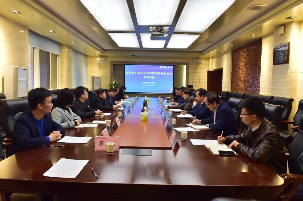 10月19日下午,咸阳职业技术学院副院长王辉一行9人来校考察交流。学校副校长祝战斌,发展规划处处长郑爱泉,机电工程学院院长龙建明、信息工程学院院长陈高峰、动物工程学院副院长张振仓、产教融合处副处长张英杰、招生就业处副处长夏浩军及招生就业处相关人员参加了座谈会。