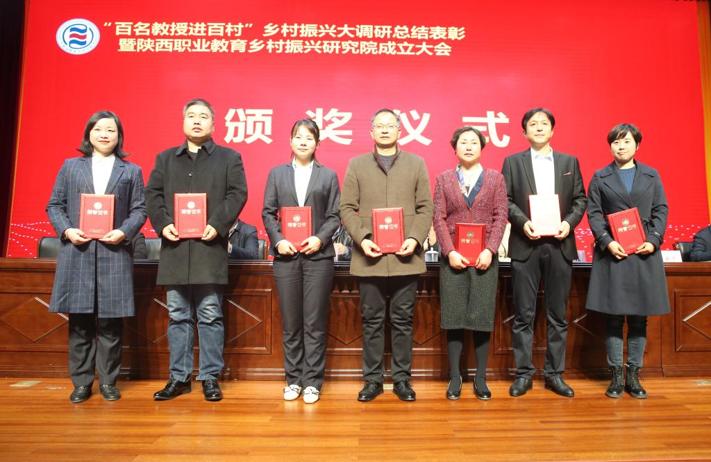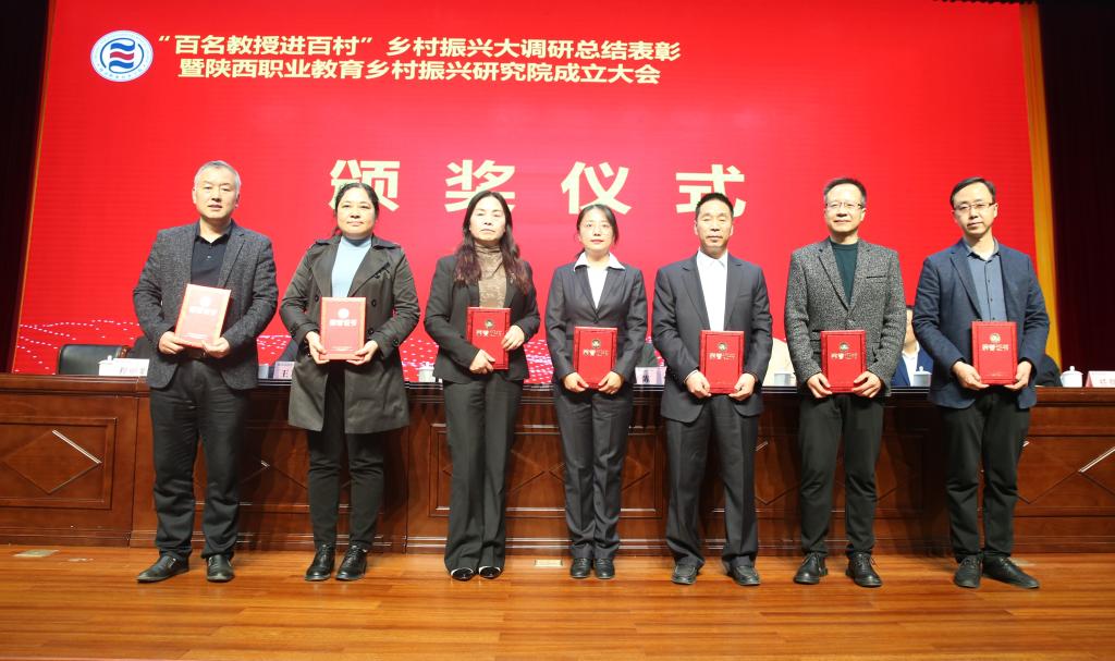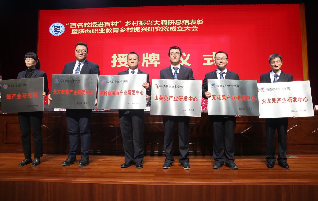会上,王彦平和校党委书记陈宁共同为“陕西职业教育乡村振兴研究院”揭牌。王彦平、庞怀礼、程丽娟、陈亚平、陈宁、任得元对学校新成立的yl23455永利官网蜂产业研究院、北方草莓产业研发中心、秦岭食用菌产业研发中心、山茱萸产业研发中心、无花果产业研发中心、火龙果产业研发中心等“1院5中心”进行授牌,校长王周锁为“1院5中心”负责人颁发聘书。校党委副书记任得元宣读了《关于表彰“百名教授进百村”乡村振兴大调研优秀团队的决定》,主席台就坐领导向“百名教授进百村”乡村振兴大调研22个优秀团队进行了颁奖。
