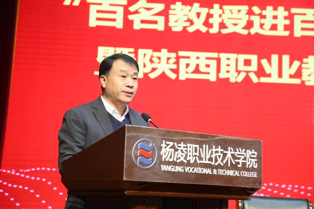 王彦平在讲话中指出,杨凌职院组织开展的“百名教授进百村”乡村振兴大调研活动,不仅具有深入一线技术服务指导和科技助农发展的现实意义,更具有先行探路的示范作用和借鉴推广的引领价值。揭牌成立的“陕西省职业教育乡村振兴研究院”,是职业教育助力乡村振兴的重要研究平台和深度融合载体,对于有效整合我省优质职教资源,强化我省职业教育科研力量协同联动,探索职业教育助力乡村振兴新路径、新模式,全面提升职业教育服务乡村振兴和区域经济社会发展的能力,具有十分重要的意义。他表示,省中华职教社将与政府相关部门一起,全力以赴支持研究院的建设运行与研究发展,一起将研究院打造成新时代职业教育助力乡村振兴的高水平新型智库、决策智囊、研究基地和学术中心。