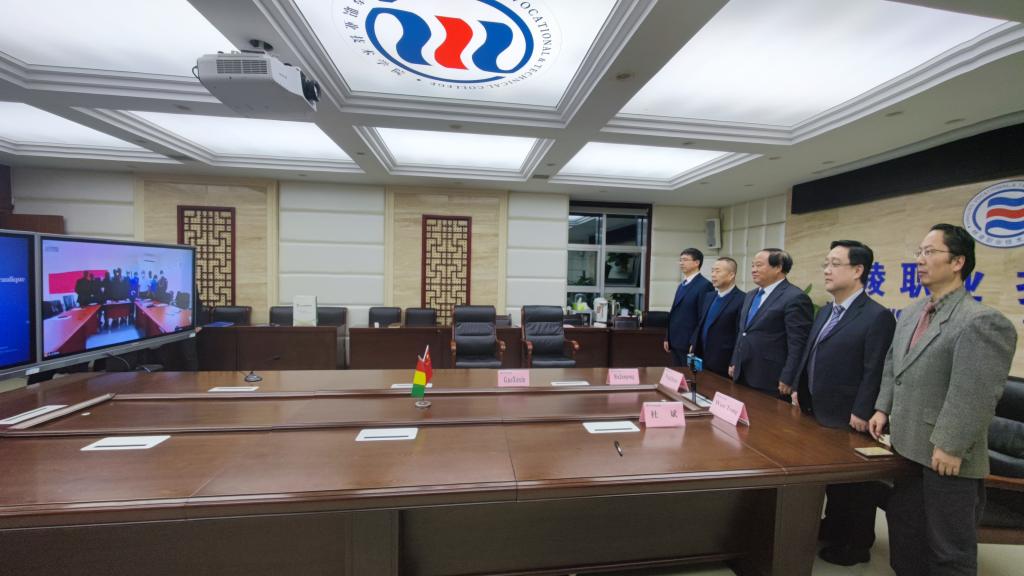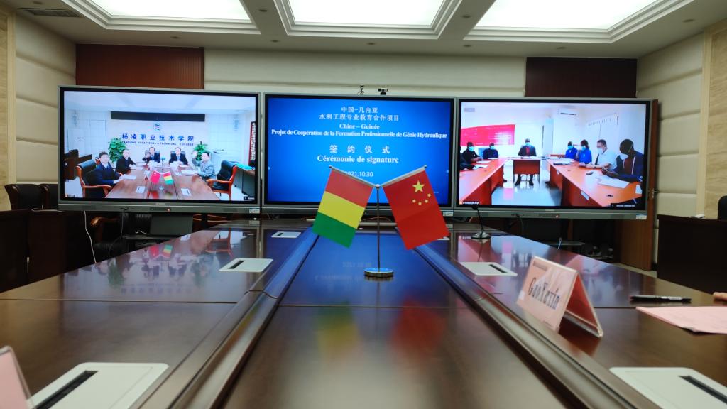 几内亚科纳克里大学校长特拉奥雷,国际合作处处长玛玛迪,理工学院副院长朗塞尼教授,土木工程系主任、水利工程学院负责人莫里博士,科纳克里大学孔子学院中方院长王宝祥、几内亚方院长米歇尔教授,水利工程学院项目负责人刘鑫杰,中文教师代表古龙;陕西省教育厅外事处处长文通,杨凌职院校长王周锁、副校长胡俊鹏、国际学院院长杜斌、水利工程学院副院长郭旭新等参加了签约仪式。签约仪式由王宝祥主持。