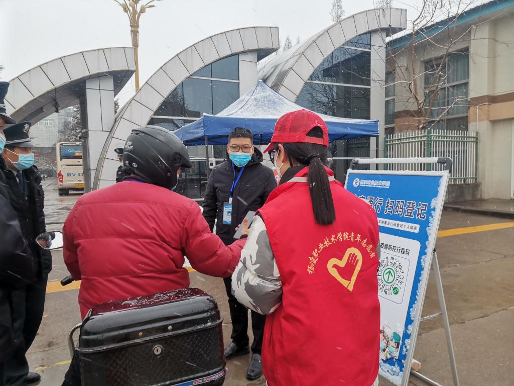 除此之外,各党总支、党支部纷纷成立学生党员、入党积极分子志愿队,织密学生信息报送、学生动向掌握等领域“责任区”;保卫处成立了3支共18人以党员为骨干的学生退役军人突击队,充实校内巡逻力量;学校总值班室、学生处、保卫处、各二级学院实行24小时值班,各级干部不畏风雪、不分昼夜、坚守岗位,广大党员主动请缨、积极行动、站在前、挺在先,以他们的实际行动让党旗始终高高飘扬在校园疫情防控的第一线。