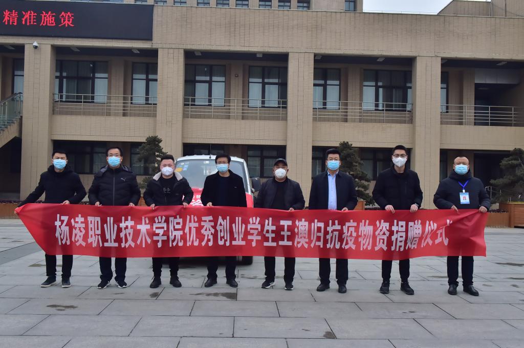 1月8日下午,动物工程学院学生王澳归为学校捐赠蔬菜900斤,苹果600斤、猪肉120斤、酒精60瓶等物资,助力学校疫情防控工作。党委委员、组织部部长田争运代表学校接受捐赠。