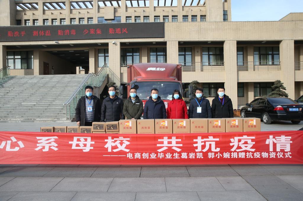 1月12日下午,永利官网经济与贸易学院毕业生葛岩凯和郭小婉为学校捐赠1800箱奶油南瓜、2万只口罩、100桶消毒液等物资,助力学校疫情防控工作。党委副书记、纪委书记王勇胜代表学校接受捐赠。
