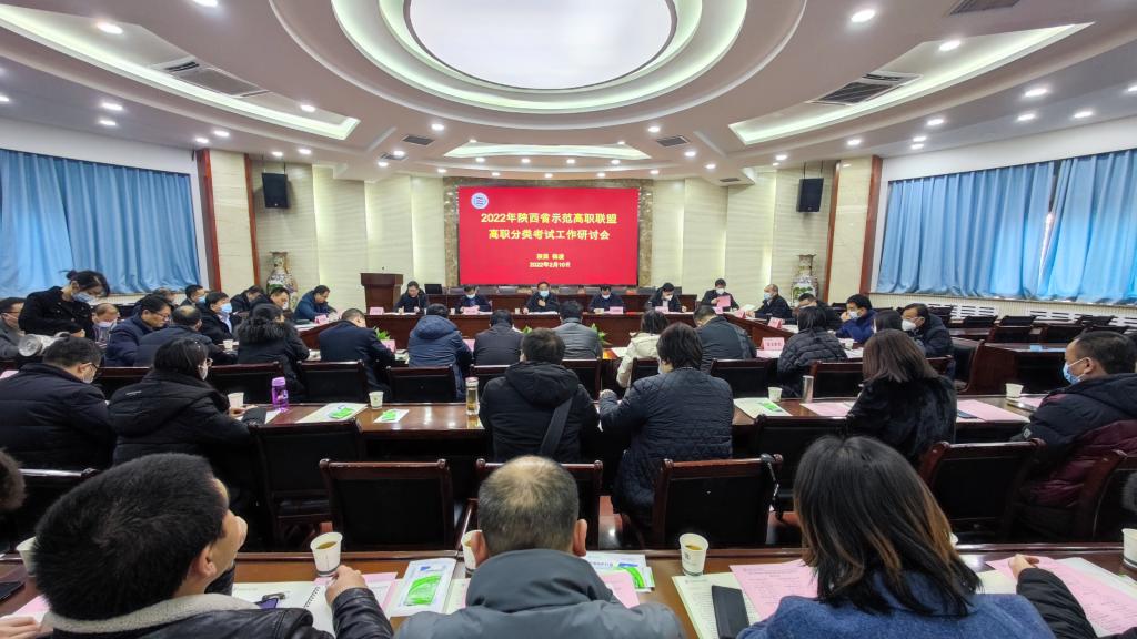 2月10日上午,2022年陕西省示范高职联盟分类考试工作研讨会在杨凌职院召开。yl23455永利官网校长王周锁、党委副书记任得元、副校长祝战斌,宝鸡职业技术学院校长张永良,陕西工业职业技术学院党委副书记贺天柱,西安航空职业技术学院副校长侯晓方,陕西国防工业职业技术学院副校长张永军,陕西职业技术学院副校长王平,咸阳职业技术学院副校长王辉,渭南职业技术学院党委副书记王录军,西安铁路职业技术学院党委副书记邓轩,以及来自省内16所示范高职单独考试招生联盟院校的招生及教务部门负责同志共60余人参加会议。会议由任得元主持。