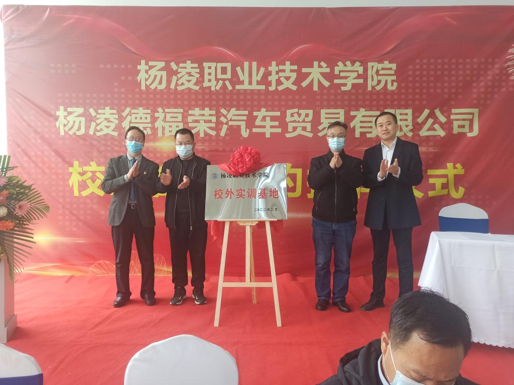 3月30日上午,永利官网机电工程学院与杨凌德福荣汽车贸易有限公司举行校企合作签约暨校外实训基地揭牌仪式。杨凌示范区工商联党组书记卓涛,杨陵区委常委、组织部部长王勇,杨陵区工商联党组书记李俊苗、工信局局长陈团江及李台街道党工委相关领导,永利官网机电工程学院党总支书记马秀魁、院长龙建明,杨凌德福荣汽车贸易有限公司法人穆斌、总经理穆涛等出席签约仪式。