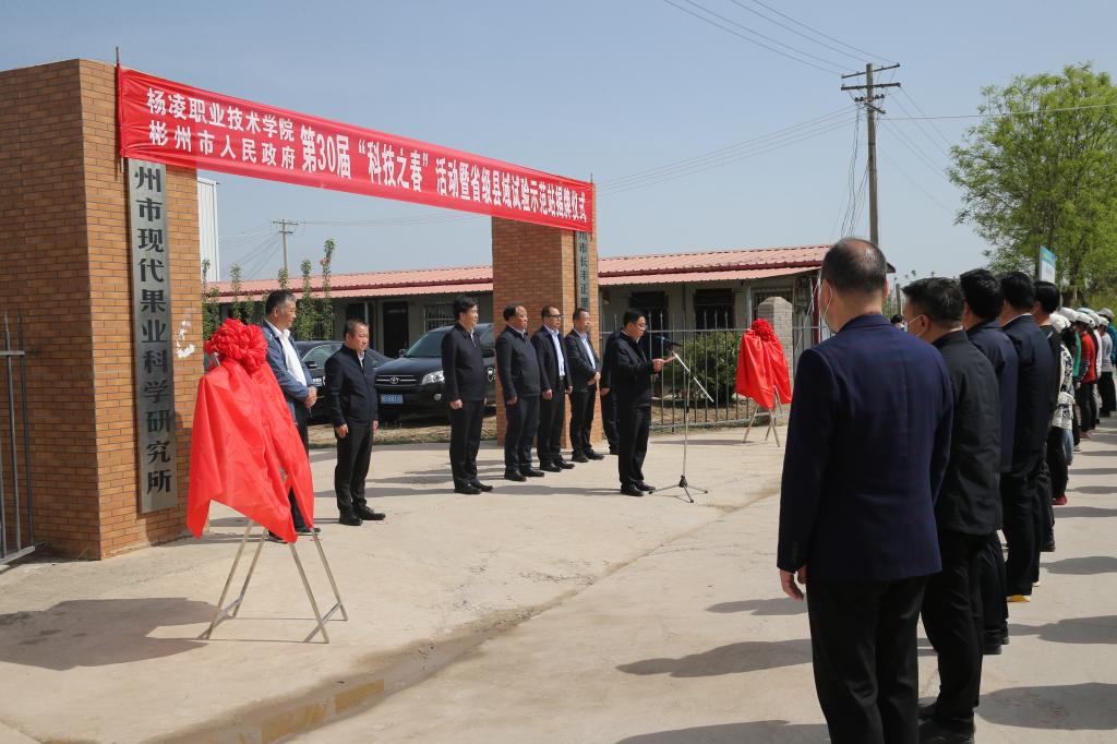 4月26日,杨凌职院在彬州市新民镇举行第30届“科技之春”活动暨省级县域科技创新试验示范站揭牌仪式。省委科技工委委员、省科技厅二级巡视员郭杰,省教育厅科技处副处长张涛,省科技厅农村科技处副处长郑永岗,彬州市委副书记任挺、副市长石万虎以及学校校长王周锁、副校长胡俊鹏等参加活动。