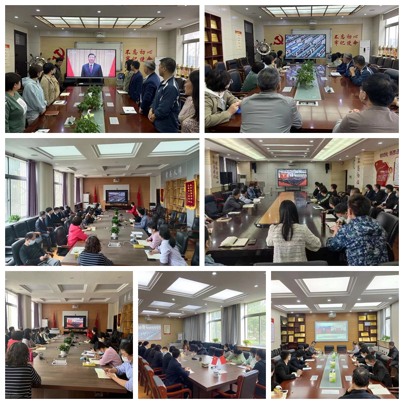 上午9时50分,学校党委理论学习中心组成员,校团委委员、各学院分团委书记、校团委干部、校学生会主席团成员在主会场208会议室,收看庆祝中国共产主义青年团成立100周年大会现场直播。与此同时,各处室和各学院党总支书记、马克思主义学院党总支、分团委委员、学生会主席团成员在各自会议室分会场,其他广大团员师生和青年学生通过新华网、学习强国等网络平台自行收看收听大会直播。