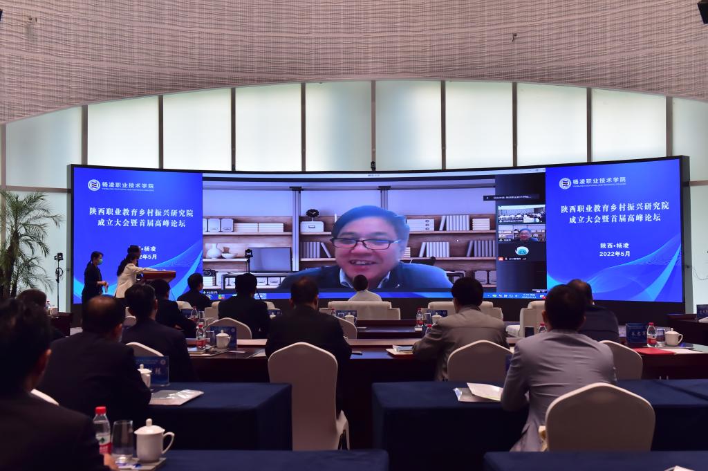 5月13日,陕西职业教育乡村振兴研究院成立大会暨首届高峰论坛在yl23455永利官网举行。省委教育工委、省教育厅二级巡视员高巍,省教育厅职业教育与成人教育处处长付仲锋,省乡村振兴局副局长李育江,省农业农村厅科教处副处长庞怀礼,省农业农村厅科教处副处级调研员程丽娟,杨凌示范区党工委委员、管委会副主任董立民,党工委委员、杨陵区委书记陈辉,党工委管委会副秘书长陈亚平,省中华职教社副主任兼秘书长王彦平,省职教学会会长崔岩,教育部职业教育发展中心副主任刘宝民,西安交通大学马克思主义学院院长燕连福,咸阳彬州市副市长石万虎,研究院理事单位暨省内20所兄弟高职院校的领导和聘任研究员、企业代表,yl23455永利官网校长、陕西职业教育乡村振兴研究院院长王周锁及学校相关负责人参加会议。