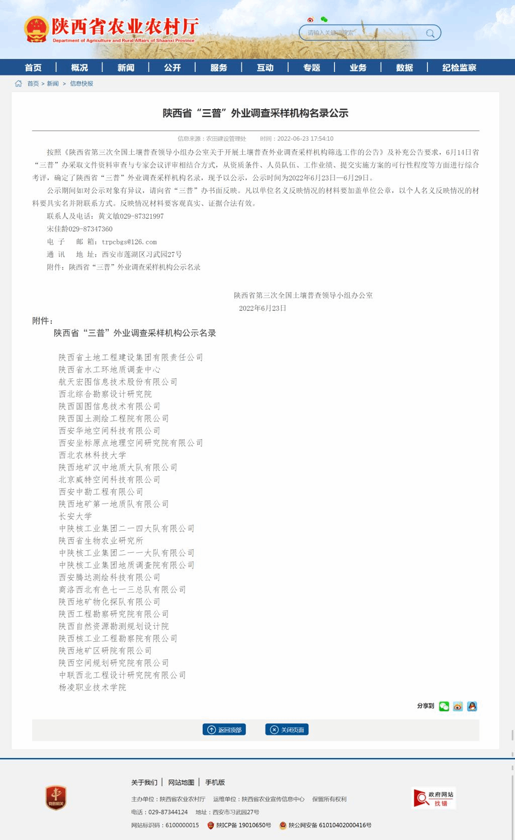 近日,陕西省第三次全国土壤普查领导小组办公室公布了《陕西省第三次全国土壤普查领导小组办公室关于开展土壤普查外业调查采样机构筛选工作的公告》,确定了全省“三普”外业调查采样机构名录,共有20家机构被确定为省“三普”外业调查采样机构,其中高校三家,职业院校仅永利官网一家。入选“三普”外业调查采样机构,是永利官网服务乡村振兴战略的又一重要契机。