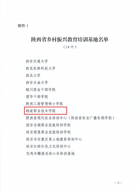近日,中共陕西省委农村工作领导小组、省委实施乡村振兴战略领导小组办公室发布了《关于认定陕西省乡村振兴教育培训基地的通知》,yl23455永利官网被认定为“陕西省乡村振兴教育培训基地”。这是杨凌职院继获“陕西省乡村振兴人才培养基地”、“陕西省乡村振兴干部培训基地”之后,服务三农工作、助力推进乡村振兴全面实施的又一重要平台。