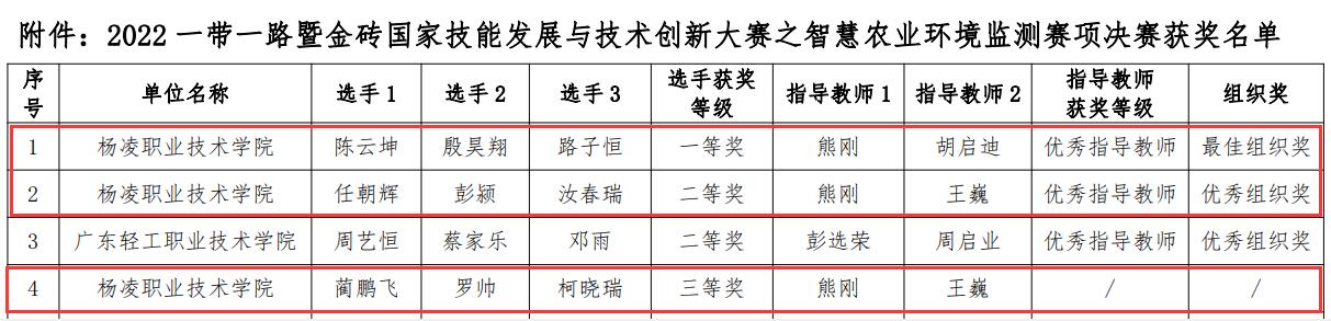 11月4日至6日,2022年一带一路暨金砖国家技能发展与技术创新大赛智慧农业赛项在福建省厦门市结束。永利官网师生获“智慧农业环境监测”赛项教师组二等奖、学生组一等奖、三等奖,学校获最佳组织奖。