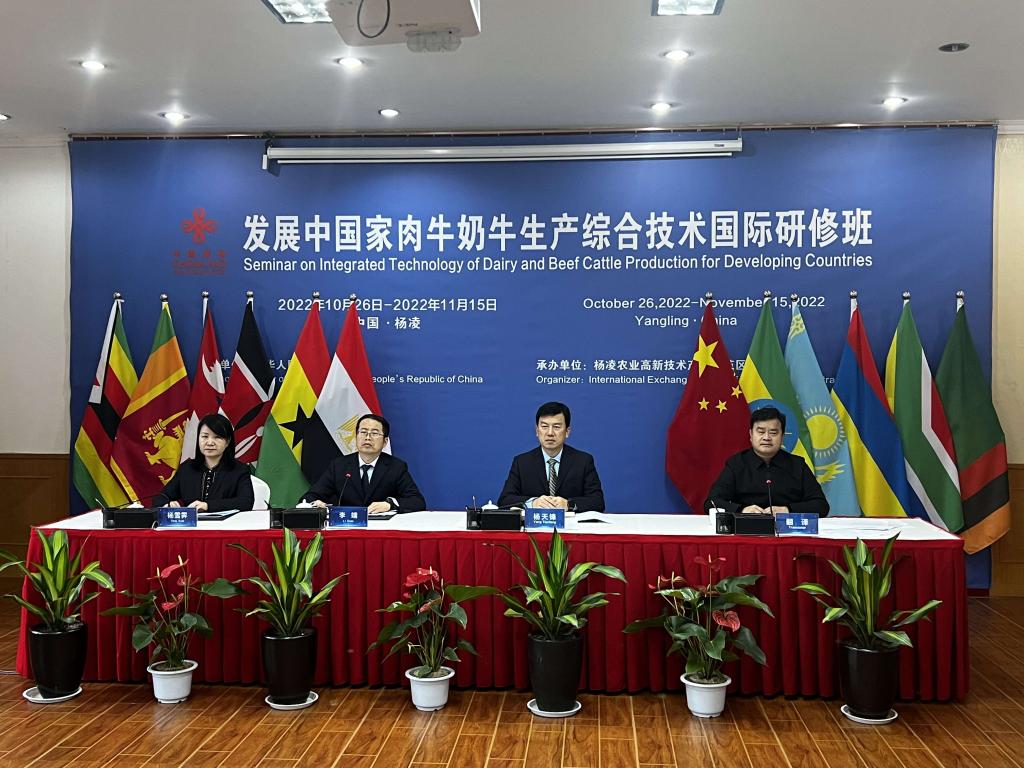 11月15日,yl23455永利官网协办的国家商务部2022年发展中国家肉牛奶牛生产综合技术国际研修班结业典礼举行。省商务厅二级巡视员昌利,杨凌示范区管委会副秘书长杨天锋,学校国际合作交流处副处长杨雪霁出席结业典礼,来自肯尼亚、赞比亚、埃塞俄比亚、尼泊尔、津巴布韦、埃及、斯里兰卡、哈萨克斯坦、南非、毛里求斯、加纳等11个国家的38名学员在线上参加活动。结业典礼由上合组织农业基地工作办公室副主任李瑞主持。