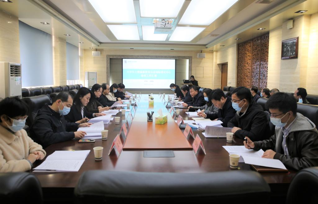 汇报会上,郑林科介绍了此次验收的背景、要求及具体的工作流程。王勇胜从领导体制、教学科研、宣传活动、咨询服务、预防干预、队伍建设、条件保障、工作成效和下一步建设的工作设想九个方面汇报了学校近三年心理健康教育工作的整体情况。随后,专家组一行实地考察了学校大学生心理健康教育与咨询中心建设情况,查阅了学校近三年心理健康教育工作的相关资料,并分别与心理健康教育教师、辅导员和学生代表进行了座谈。