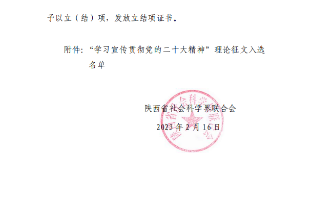 2月16日,省社会科学界联合会公布“学习宣传贯彻党的二十大精神”理论征文入选名单,永利官网马克思主义学院教师张中世、韩荣彦撰写的论文《弘扬延安精神 牢记“三个务必”》成功入选。