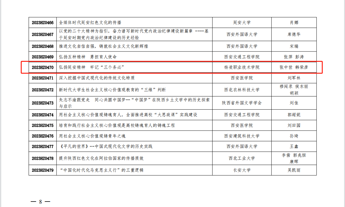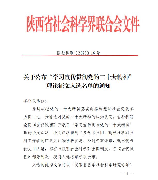 此次征文活动共选出优秀论文116篇,拟在《陕西社会科学》全部刊发,在《当代陕西》部分刊发。全省高职院校仅有2篇优秀论文入选并获得专项立(结)项。