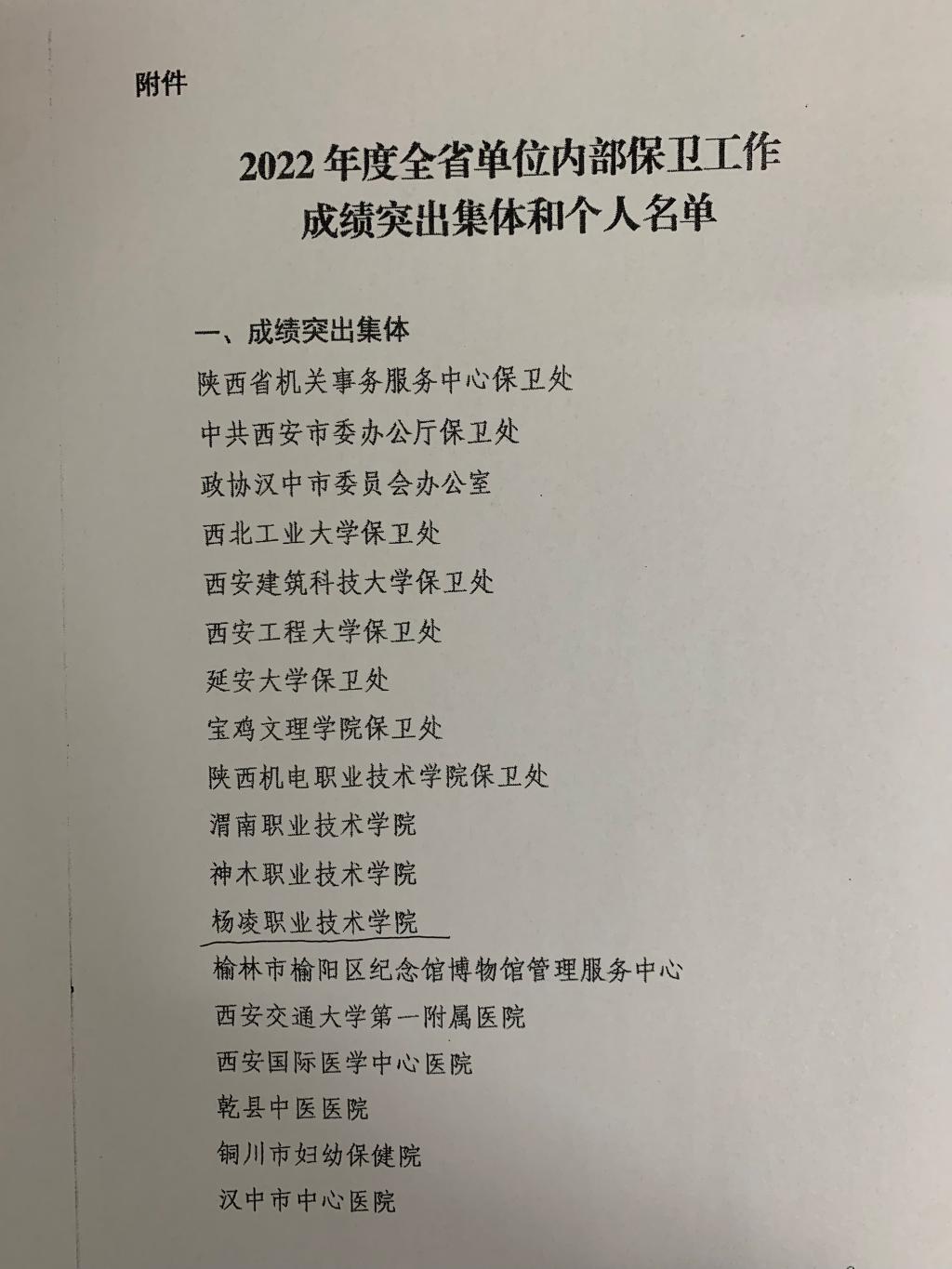 近日,陕西省公安厅对2022年度全省单位内部保卫工作成绩突出集体和个人予以通报表彰,永利官网荣获2022年度全省单位内部保卫工作成绩突出集体称号。