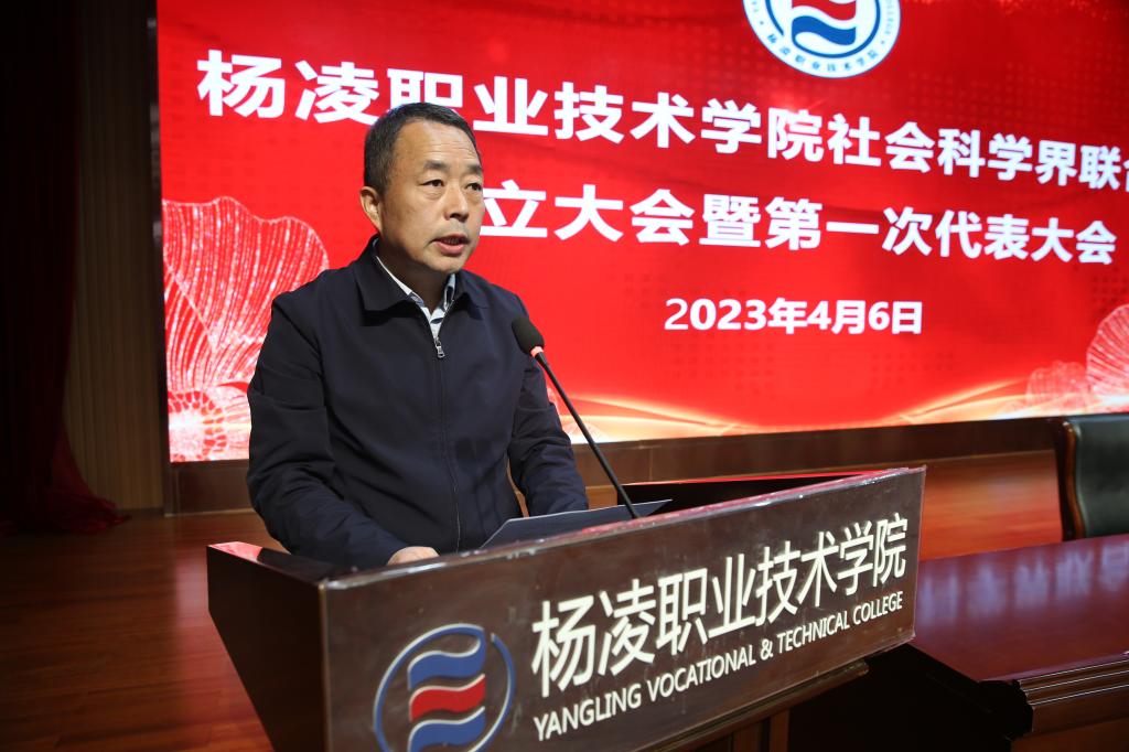 郭建树在讲话中,代表陕西省社科联对杨凌职院社科联的成立及新当选的第一届委员会委员表示热烈祝贺。他指出,yl23455永利官网社科联的成立,是以实际行动贯彻落实二十大精神,充分体现了学校对哲学社会科学工作的重视及对哲学社会科学工作者的关心。yl23455永利官网社科联的成立是yl23455永利官网的一件大事,也是我省社科界的一件喜事,为学校新文科建设搭建了新的平台,也壮大了我省社科联组织基础。他分析了陕西省哲学社会科学发展的现状、问题及规划,简要介绍了省社科联针对存在问题的工作思考。他充分肯定了yl23455永利官网近年来的发展及在哲学社会科学领域取得的成绩。他希望,学校社科联一是要举旗帜,始终坚持马克思主义指导地位,贯彻习近平新时代中国特色社会主义思想。二是要发挥学校优势,服务社会经济发展。三是要积极开展学术交流活动,促进学科发展和人才队伍建设,切实发挥社科联桥梁纽带作用,努力推进社科事业繁荣发展。他表示,省社科联将大力支持yl23455永利官网社科联开展工作,在课题研究、学术交流、社科服务以及人才推荐等方面给学校社科工作者提供更广阔的平台,促进学校社科联健康成长和发展壮大。