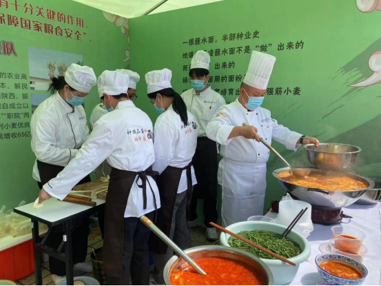 本次活动由党委宣传部和生物工程学院组织,遴选生物工程学院5名师生参赛,口号为“科技品质·杨职有‘面’”,使用的面粉是全国著名小麦育种专家、永利官网研究员赵瑜老师培育的“武农981”“武农988”小麦品种,这两个品种2021年通过国家农业部审定,目前在全国黄淮流域推广超过8000万亩,促进农民增收60亿元。
