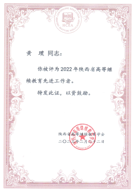 近日,陕西省高等继续教育学会公布了2022年陕西省高等继续教育优秀继续教育学院、继续教育优秀校外教学站点、继续教育先进工作者评选结果,永利官网继续教育与培训学院荣获2022年陕西省高等继续教育优秀教育学院,黄璞被评为2022年陕西省高等继续教育先进工作者。这是永利官网继续教育与培训学院连续三次获此殊荣。