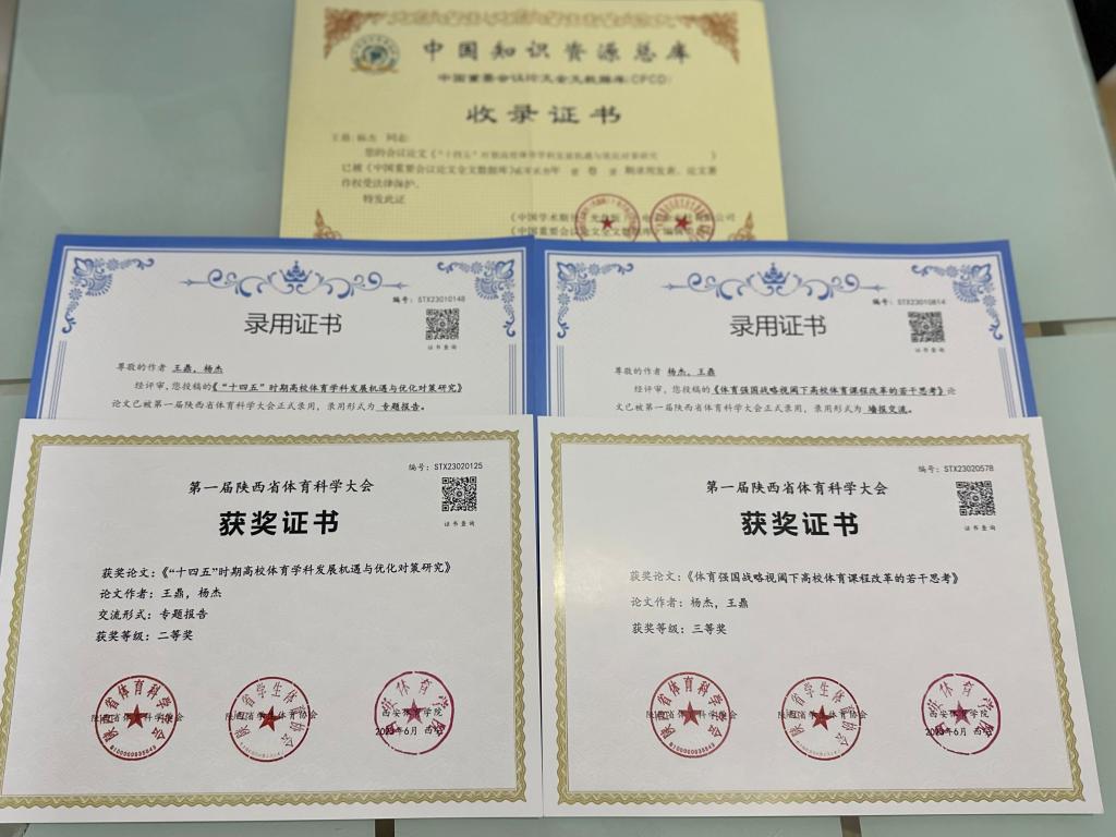 6月9至10日,由省体育科学学会、省学生体育协会、西安体育学院共同主办的第一届陕西省体育科学大会在西安体育学院举行。永利官网体育课教学部教师7篇论文获奖。