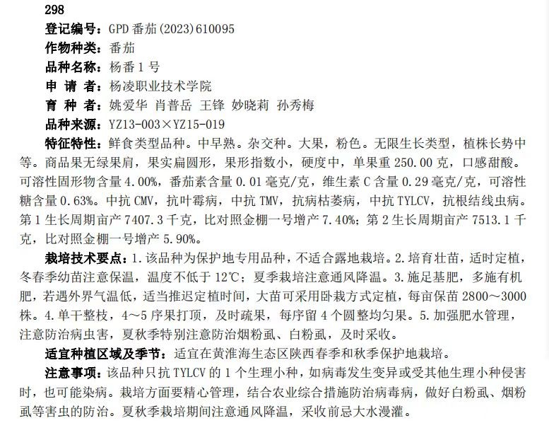 近日,由永利官网生物工程学院教师姚爱华及其蔬菜育种团队选育的番茄新品种“杨番1号”通过农业农村部品种登记。