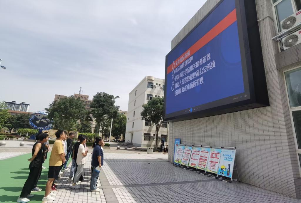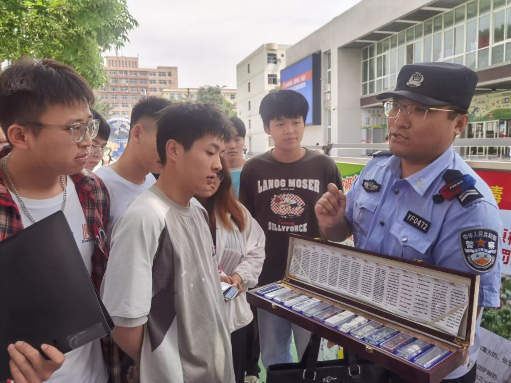 ——开展禁毒知识进校园巡展活动。与辖区派出所联合在三校区开展禁毒知识巡展活动,民警通过展示仿真毒品、讲解各种毒品危害、发放禁毒宣传资料以及宣讲禁毒防范手册等方式,全方位、多角度宣传禁毒知识,揭示滥用毒品、新精神活性物质等对个人、家庭和社会的严重危害,引导师生牢固树立“健康人生、绿色无毒”的生活理念。