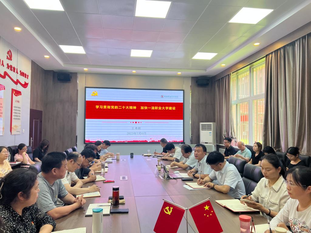 7月6日,学校党委副书记、纪委书记王勇胜以“学习贯彻党的二十大精神 加快一流职业大学建设”为题,为旅管学院全体党员干部讲授专题党课。
