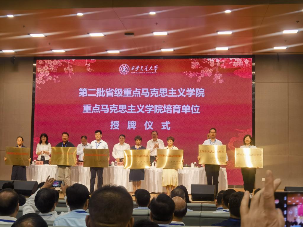 会议总结成绩,部署工作,为陕西省第二批重点马克思主义学院和培育单位进行授牌。永利官网马克思主义学院副院长张伟领取了由省委宣传部、省委教育工委颁发的“陕西省重点马克思主义学院培育单位”的授牌。