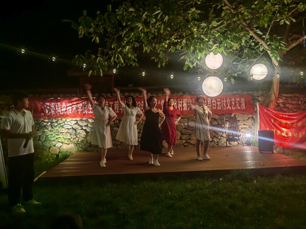 ——举办一场校村文艺汇演,助推文化振兴。7月11日晚,生态环境工程学院服务队在白云村村委会广场举办了“党建+乡村振兴”文艺汇演活动,师生及当地乡贤达人纵情讴歌、热情演说、载歌载舞,歌颂党的政策好、白云村发展好、父老乡亲生活好,受到了一致好评。