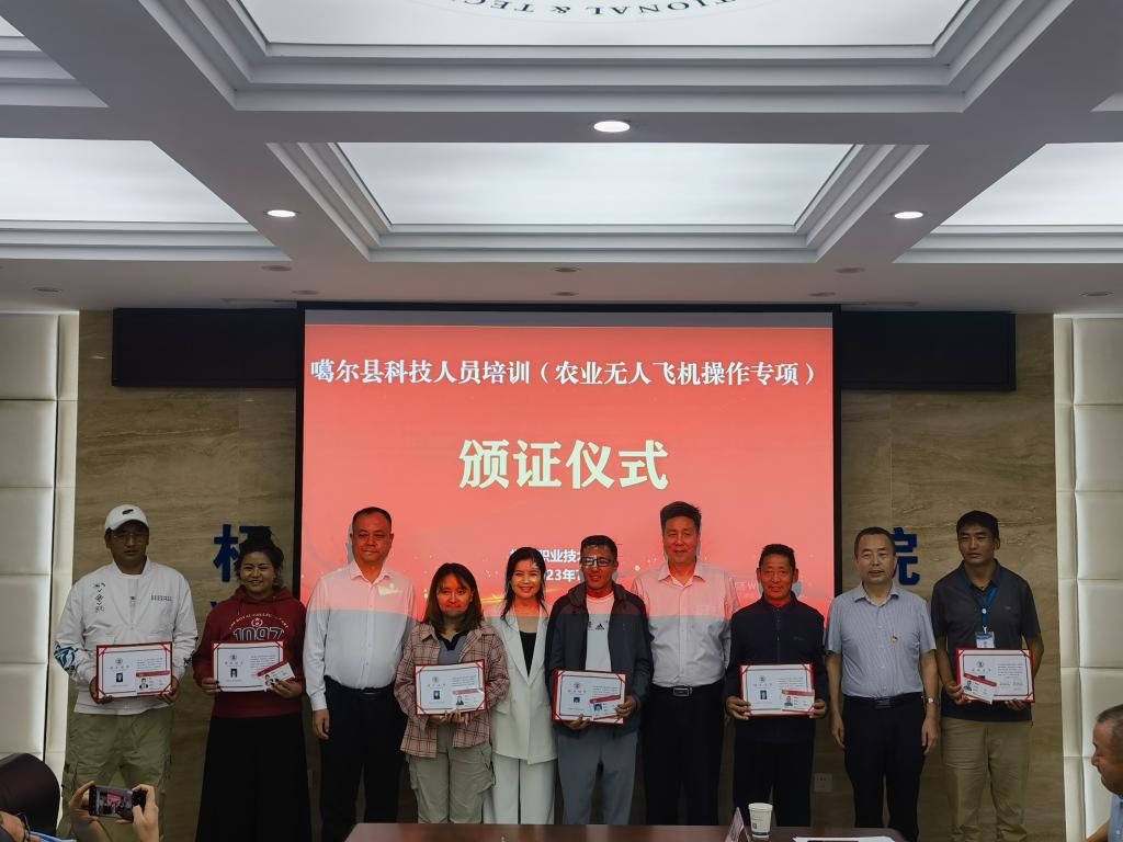 座谈会上,张松梅、郭杰、马江涛、胡俊鹏为次旺多吉、贡觉卓玛、益西旺扎、边巴欧珠、美朵卓玛、次仁六位学员颁发了农业无人机操作员证书。张松梅与六位学员进行了亲切的交流。胡俊鹏介绍了学校的基本情况,特别是永利官网发挥全国乡村振兴人才培养优质校优势,利用涉农专业和科技创新与社会服务的特色,在中省市县各级积极开展科技培训的情况。黄璞汇报了西藏阿里地区噶尔县科技人员素质提升专题培训班的开展情况。六位学员各自发言表达了对本次培训的感想感受。