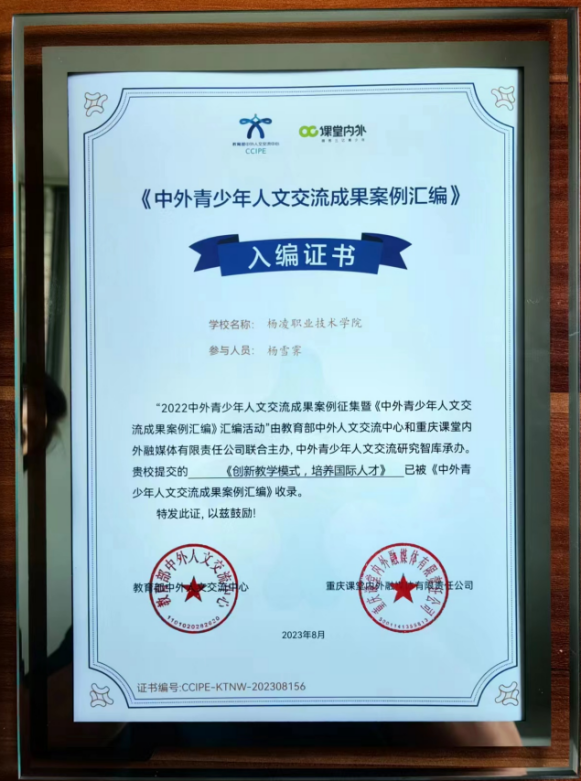近日,教育部中外人文交流中心组织编撰的《中外青少年人文交流成果案例》正式出版发行,永利官网典型案例《创新教学模式,培养国际人才》成功入编,这也是陕西省入编本书的唯一案例。