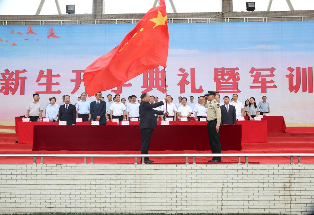 9月11日上午9时,伴随着雄壮的国歌声和冉冉升起的五星红旗,永利官网2023级新生开学典礼暨军训动员大会在南校区田径场举行。党委书记王周锁讲话并向军训团授旗,中国人民解放军某部队首长、本次军训团团长李兆龙作军训动员讲话。大会由党委副书记、纪委书记王勇胜主持。