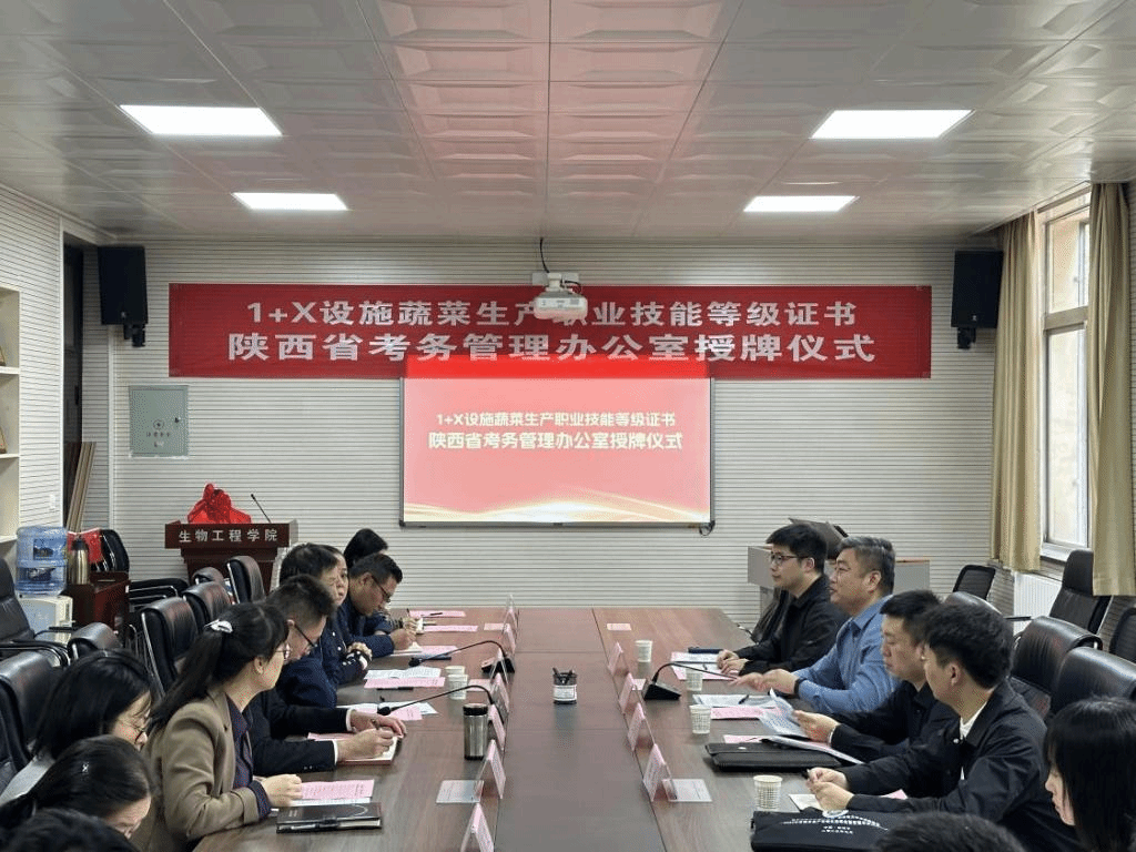 10月9日上午,永利官网举行“1+x设施蔬菜生产职业技能等级证书”陕西省考务管理办公室授牌仪式。山东寿光蔬菜产业集团副总经理李加宝、1+X设施蔬菜生产职业技能等级证书工作委员会秘书长王晨明,副校长祝战斌、教务处处长刘新燕、生物工程学院相关负责人出席授牌仪式。授牌仪式由刘新燕主持。