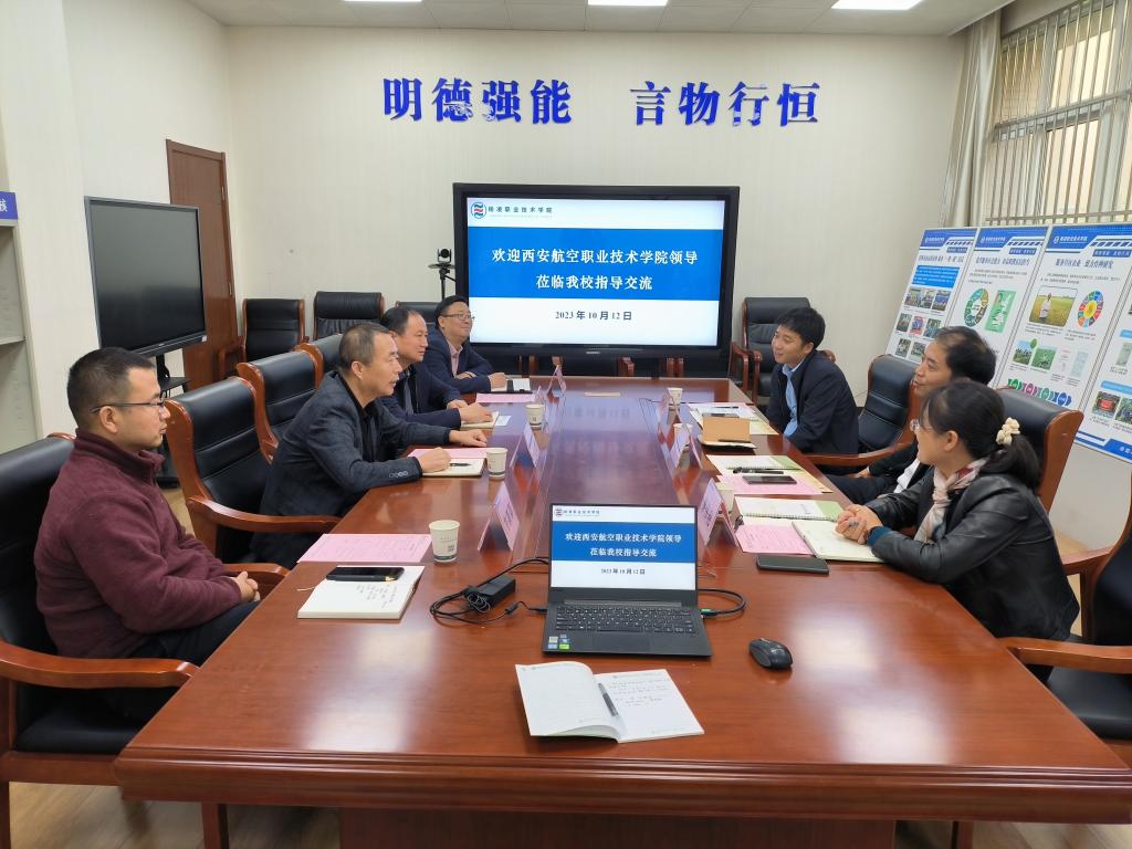 10月12日下午,西安航空职业技术学院副校长郭红星、现代职业研究院及国有资产处相关负责人一行3人来永利官网调研交流。副校长胡俊鹏、资产设备处及发展规划处负责人陪同调研。