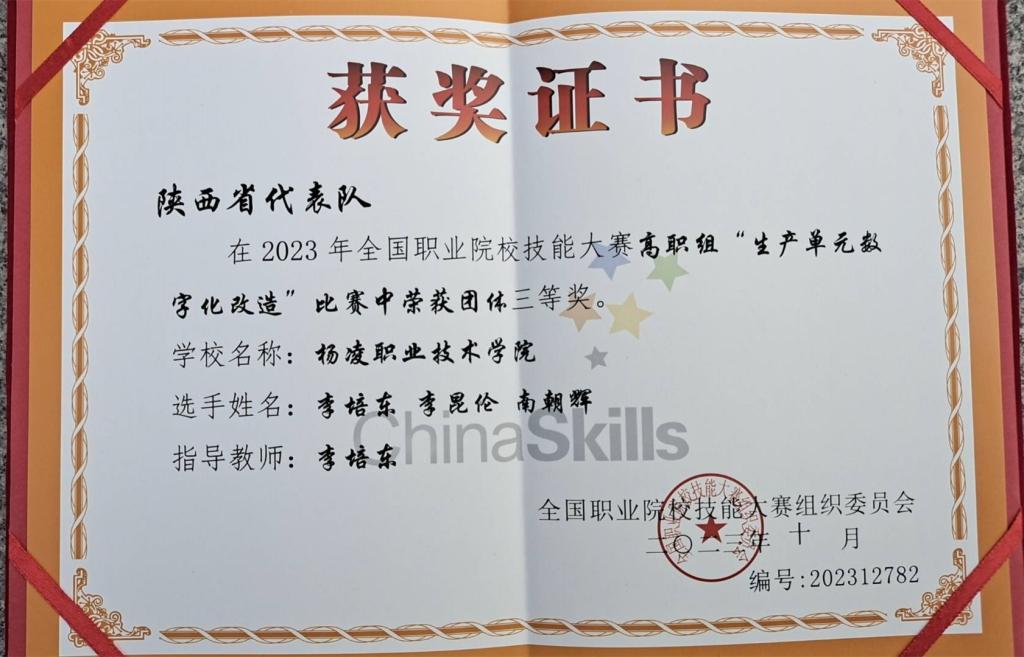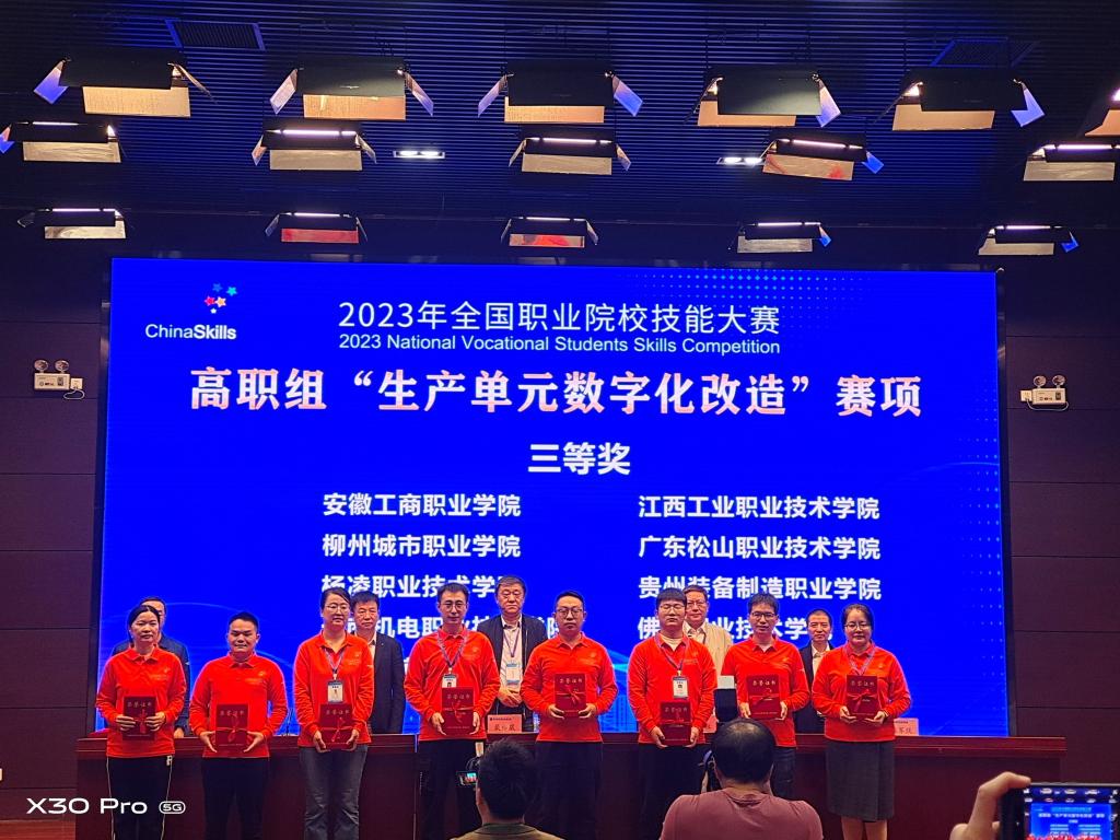 10月11日至13日,2023年全国职业院校技能大赛高职组“生产单元数字化改造(师生同赛)”赛项在天津轻工职业技术学院举办,共有来自全国30个省(市)、自治区的82支代表队、246名选手参加了本次比赛。永利官网教师李培东和学生李昆伦、南朝辉组成的代表队荣获三等奖。