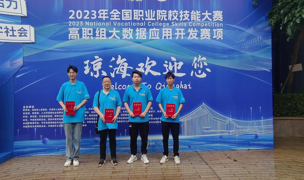 10月23日至24日,2023年全国职业院校技能大赛高职组“大数据应用开发”赛项在海南信息职业技术学院举办,共有来自全国31个省、自治区、直辖市的64支参赛队伍、256名参赛选手同台竞技。永利官网信息工程学院薛海斌老师和焦泽宇、李向阳、张亮亮三位同学组成的代表队荣获该赛项团体三等奖。