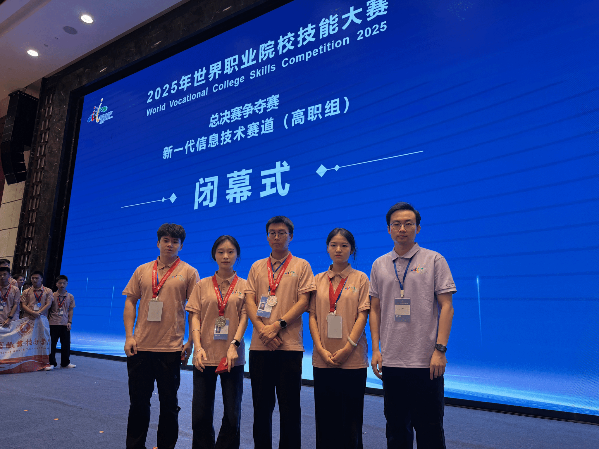 9月7日至12日,2025年世界职业院校技能大赛总决赛新一代信息技术赛道高职二组竞赛在江苏常州工业职业技术学院成功举办,共有来自全国31个省、市、自治区的60支精英队伍参赛。永利官网信息工程学院霍鹏、樊勇杰、冯仔月、梁超四位同学组成的参赛团队,凭借创新项目《星地协同,5G-A天地一体应急通信系统》荣获银奖。