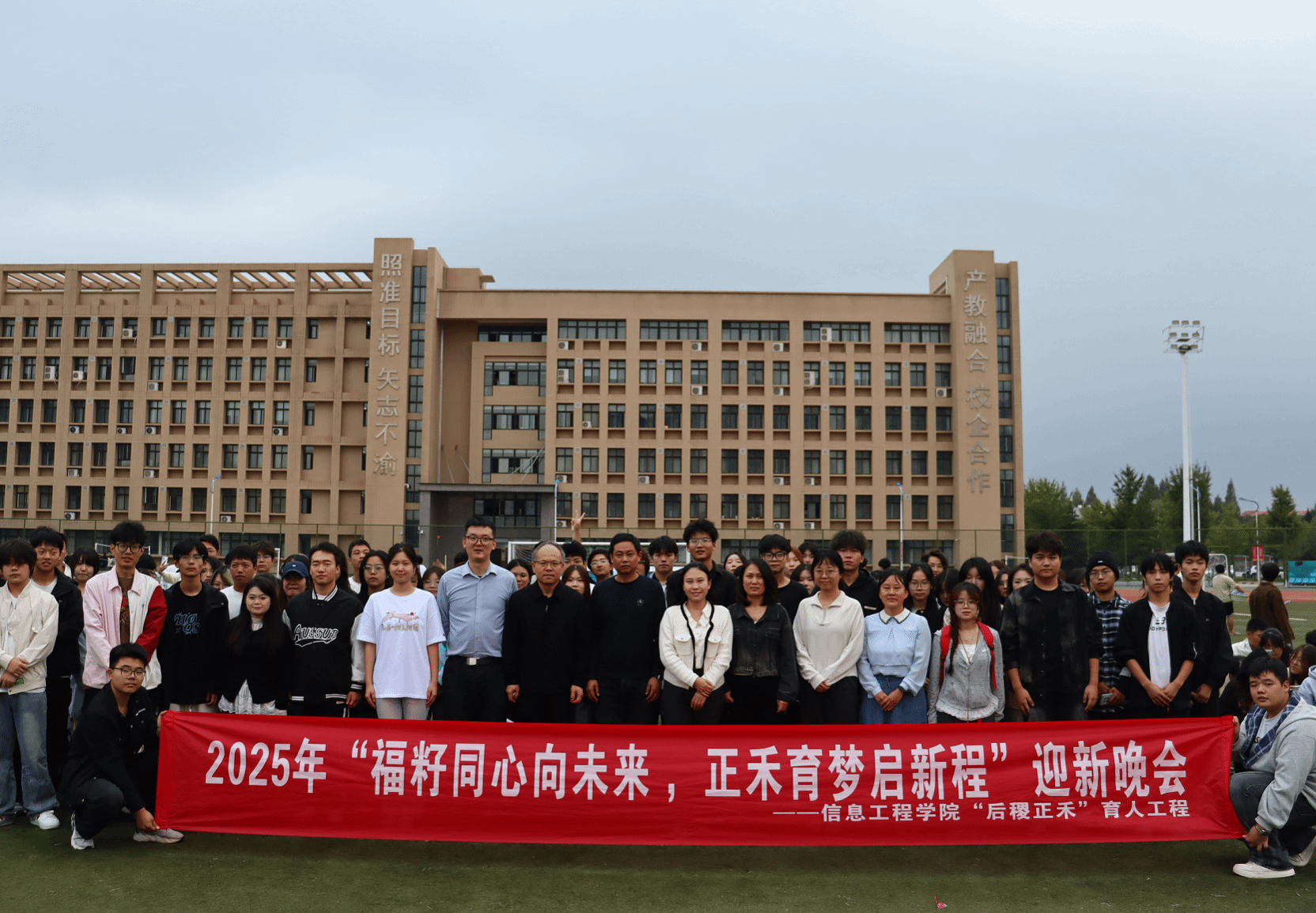 为推进后稷正禾育人工程落地见效,9月26日晚,信息工程学院在南校区操场举办“福籽同心向未来,正禾育梦启新程”主题迎新晚会。信息工程学院负责人、学工办主任、全体辅导员与学院2025级全体新生参加。