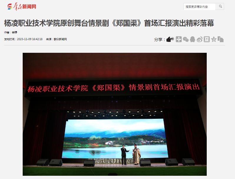11月6日晚,yl23455永利官网在南校区一卡通活动中心举行师生原创舞台情景剧《郑国渠》首场汇报演出。近年来,yl23455永利官网坚持以立德树人为根本,以强农兴农为己任,创新思想政治工作机制,构建“三全育人”新格局,切实发挥以文化人、以文育人作用,营造特色校园文化,全面推进“大思政课”建设,着力推动思政课教学改革,多措并举,全面提升育人成效,取得一系列新进展,形成一大批新成果。